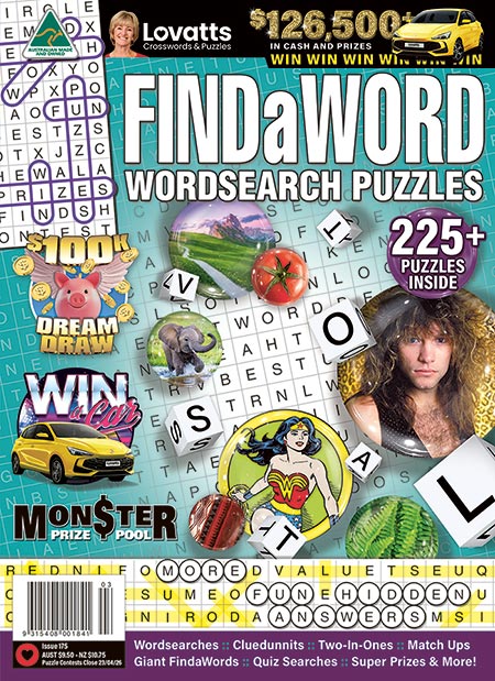 FindaWord® is a fun and friendly magazine of wordsearch puzzles with a few extra Lovatts twists! For a clever variation to the classic wordsearch format, cross off the listed words and the letters left over will reveal an interesting or amusing hidden answer related to each puzzle's theme.