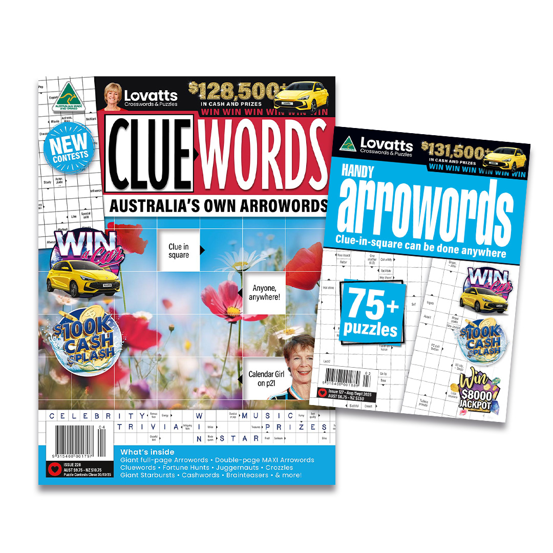 Arroword puzzles have the clues in the black squares for convenience and fun. The Cluewords magazine features large arroword puzzles plus the giant Maxi crossword. Handy Arrowords features a generous serve of snack-sized crosswords in an on-the-go-sized magazine. Most arrowords contain clues to everyday words but we’ve also included a selection of trivia, themed and celebrity crosswords for your enjoyment.