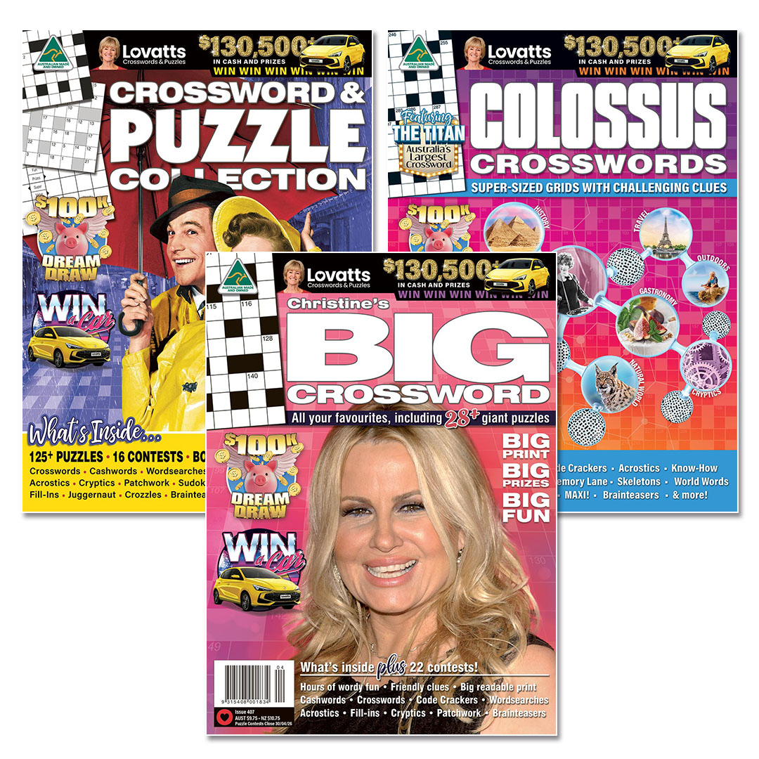 Our top titles are sure to entertain! BIG Crossword, Colossus Crosswords and Holiday Crossword Collection are packed with classic crosswords plus general knowledge, music, geography and celebrity themed and brainteaser puzzles. There’s something for everyone, including a few tougher crosswords and competitions galore.