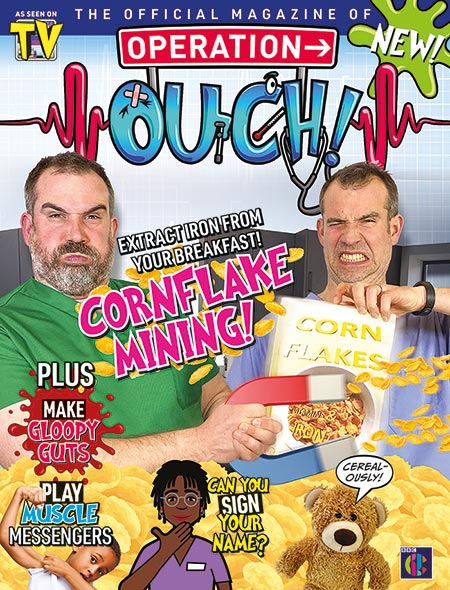 magazine, Issue 11. In this issue, read all about how you absorb nutrients from your food, and witness Dr Xand and Dr Chris go cake-to-cake in a cake-tastic challenge! You'll also learn about muscle fibres and how jockeys manage to stay in the racing position for so long, using a new state-of-the art simulator. Plus, find out why your body needs iron, the same iron that’s in screws and nails! What? With guts galore of brain-busting puzzles, creative crafts and fun experiments,