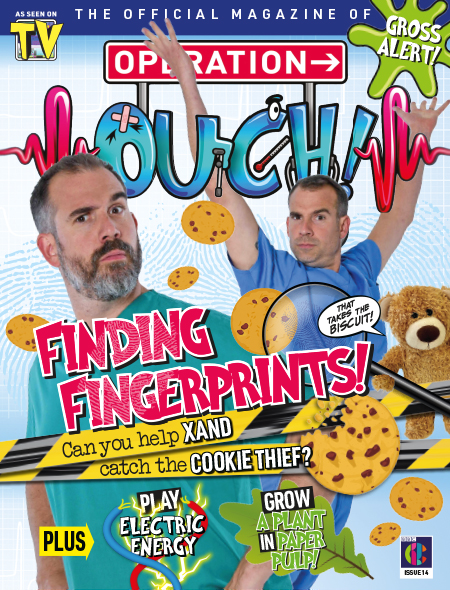In this issue: Can you help Dr Xand catch the cookie thief? In this issue of Operation Ouch, you’ll learn all about the amazing whorls, loops, and arches that make up our fingerprints. Did you know that every single person’s fingerprints are unique? You’ll also read about the mighty mitochondria, teeny-tiny structures in your body that convert one kind of energy into another to keep your body moving, from breathing to blinking! You can even get back to nature with Forest School! With puzzles, craft, and STEM experiments galore, Operation Ouch 14 will provide hours of delightfully gross fun.
