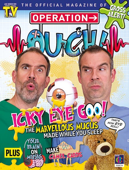 Did you know us humans have the same number of bones in our necks as giraffes? In Issue 16 of Operation Ouch, read all about the nifty muscles and bones in your neck that hold up your head, the effect that music has on your brain, and the amazing protein that helps your nails grow. It's the same protein that makes up a rhino's horn! You can also play a nail-biting game of Digit Dart, make edible eye gunk (gross!), and sew some really cool camel cards. With fun brainteasers, optical illusions, and memory puzzles, Operation Ouch 16 has it all.