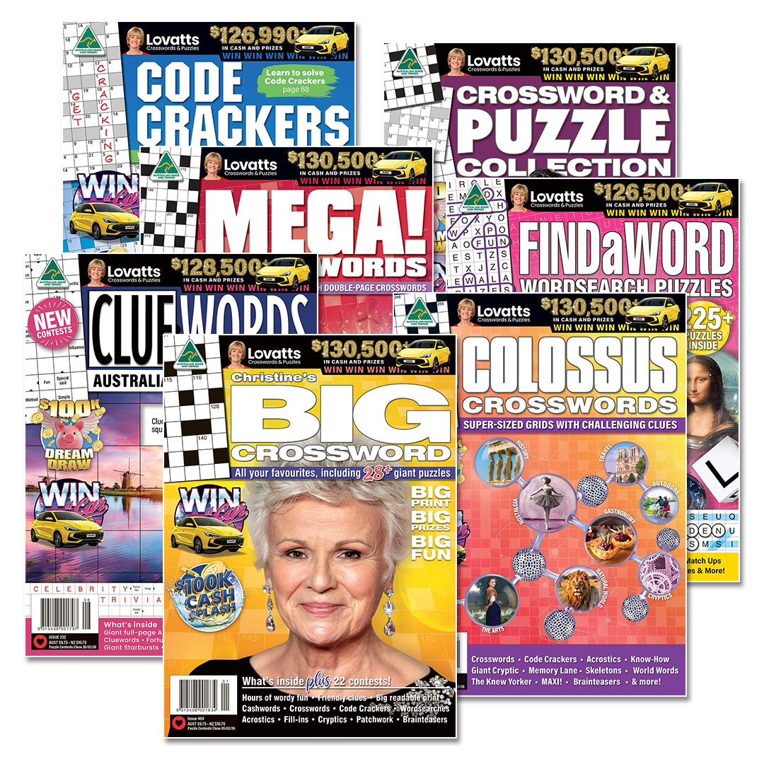 Enjoy a feast of crosswords, puzzles and contests with this best value bundle of our top seven titles. That’s 114 magazines, perfect to enjoy at your leisure. Included are Christine’s BIG Crossword, Colossus Crosswords, MEGA! Crosswords®, Crossword & Puzzle Collection, Code Crackers, Cluewords and FindaWord®; all with the Lovatts guarantee of quality.