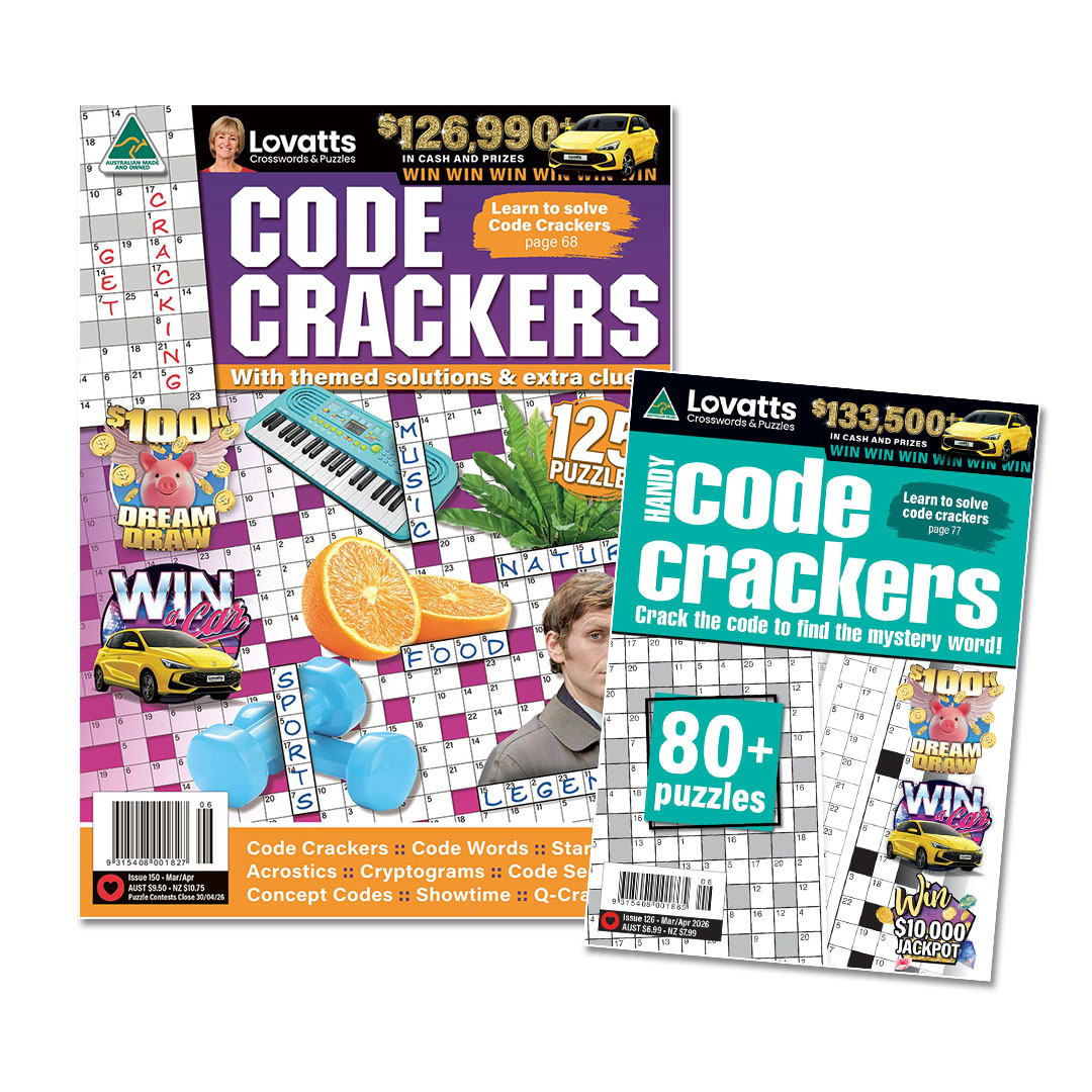 Code Cracker puzzles are highly addictive! Letters have been replaced by numbers requiring you to break the alphabet code to solve the crossword. Code Cracker Starhunts features large format celebrity and movie themed code cracker puzzles. Handy Code Crackers in the on-the-go size uses a variety of different themes from birds & bugs to musicians & mammals.