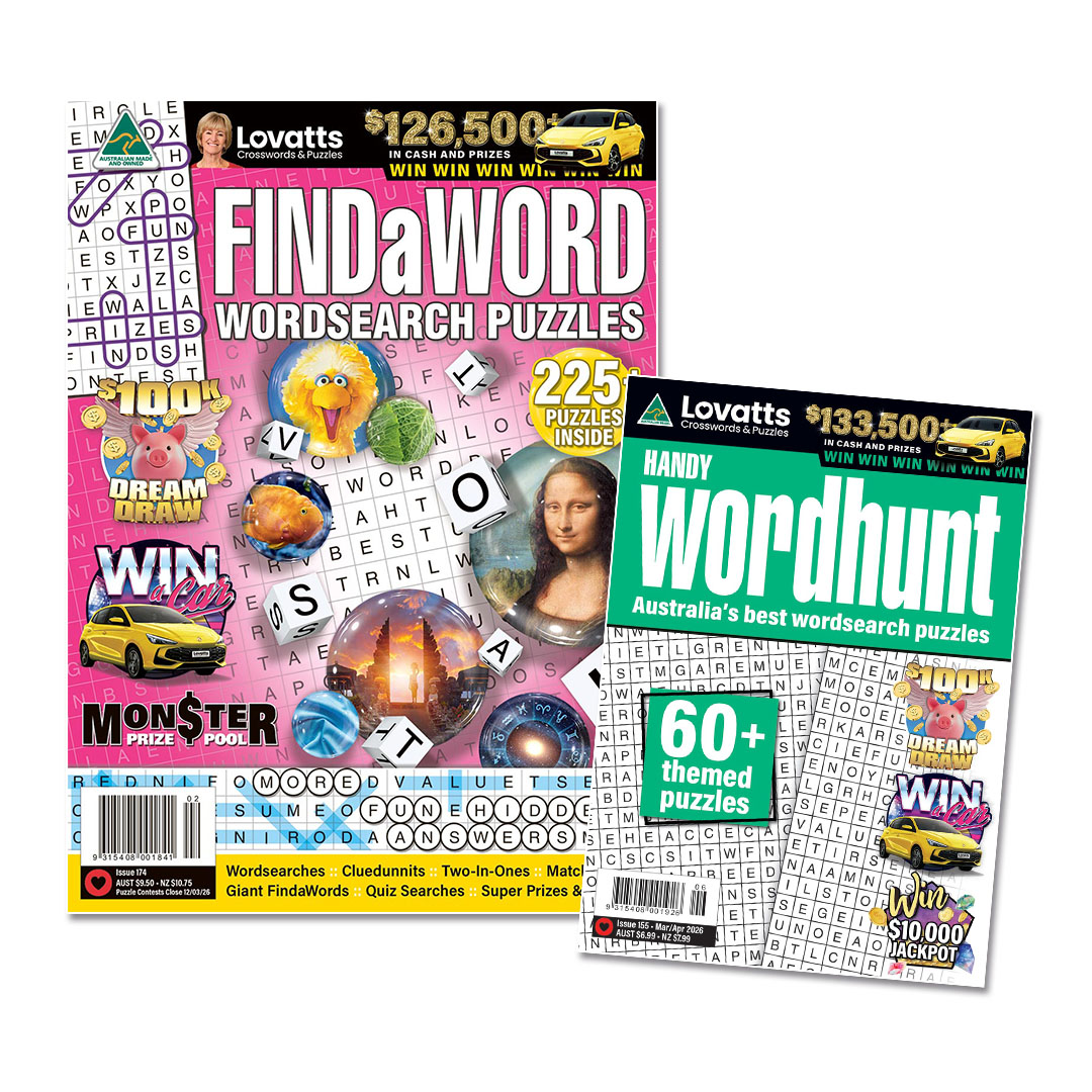 Classic puzzles plus lots of fun variations make this a must-have bundle for word search lovers. The FindaWord® magazine features themed puzzles with hidden answers plus the double page Monster FindaWord®. Handy Wordhunt is the perfect size for those on the go. Relax and have some fun as you track down the hidden words. You’ll be delighted by these quality word search magazines.