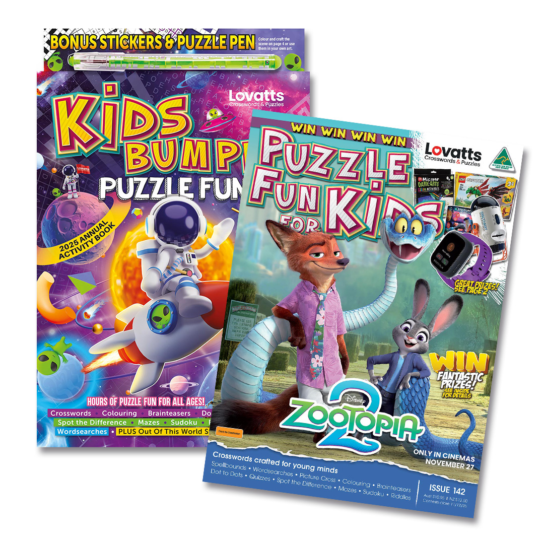 The perfect magazine for junior puzzle fans, Puzzle Fun for Kids is packed with a huge variety of entertaining and educational crosswords, brainteasers, wordsearch puzzles, and more. Each page is an exciting adventure, plus there are lots of fun competitions with great prizes to be won. A Puzzle Fun For Kids subscription bundle includes 6 issues of our Puzzle Fun For Kids magazine plus the super-popular Kids Bumper Puzzle Fun Annual.